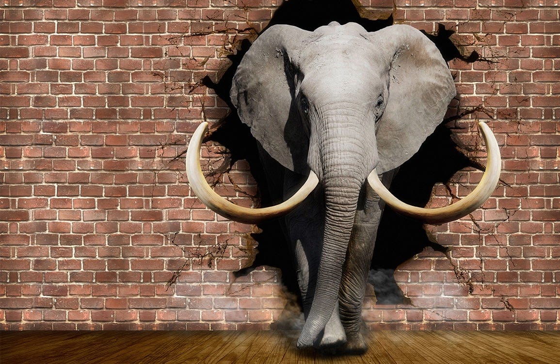 Watch out! An elephant is coming to visit you and breaking your wall! Our 3D Wall Murals is nowadays an on-trend design that appears to leap off the wallpaper, adding a new dimension to your rooms. It is an perfect choice and attempt for a unique, dramatic, funky and novel bedroom, living room or hallway. This wallpaper will certainly make your home more striking than before.