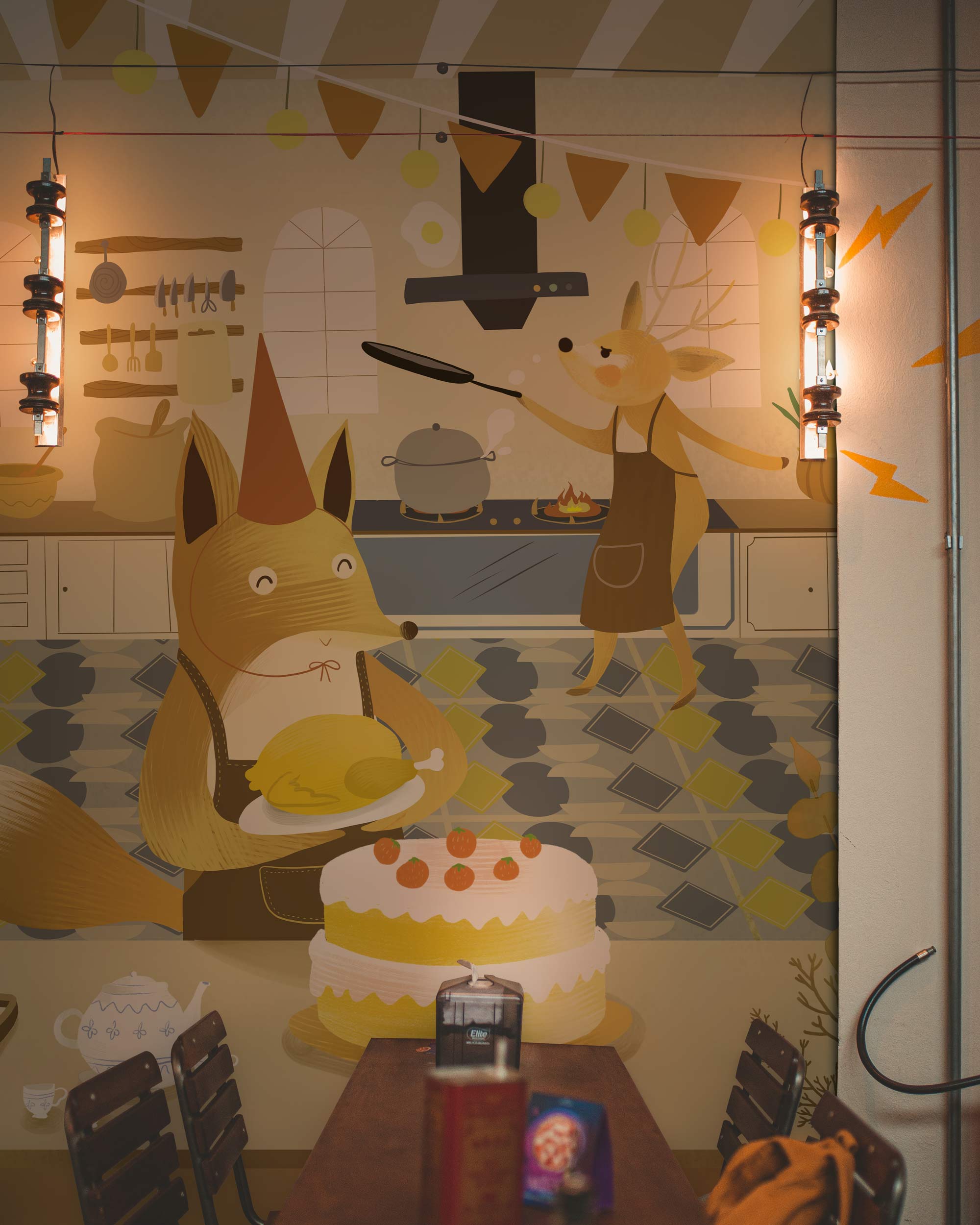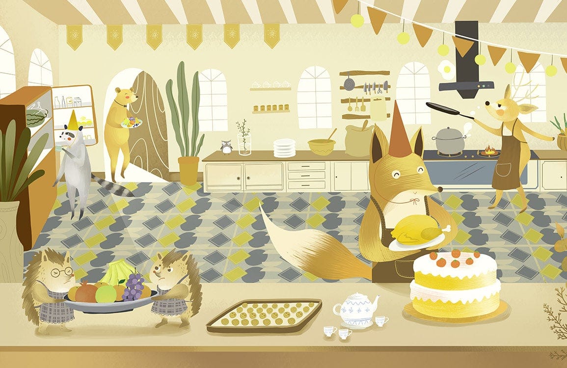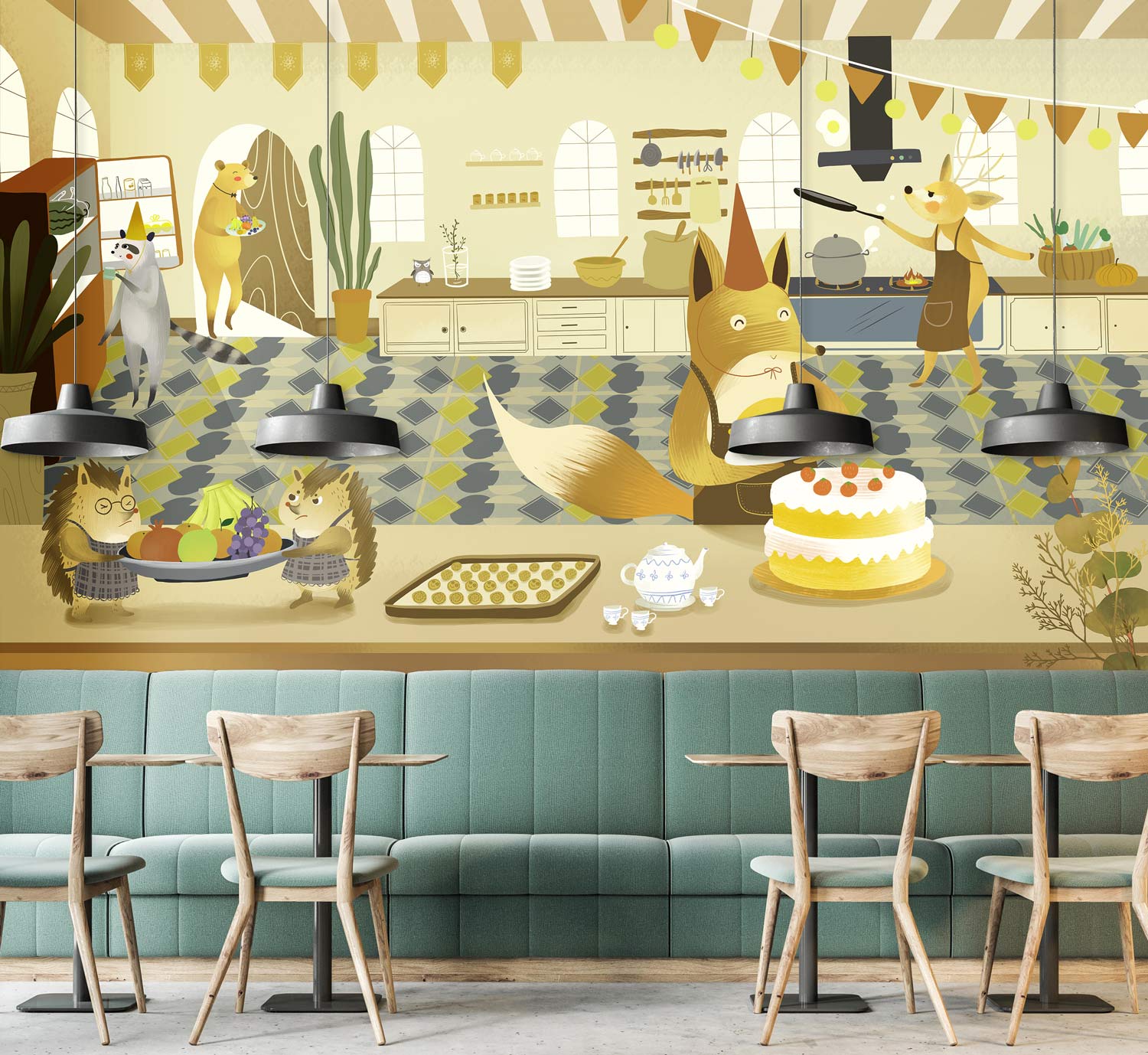 Your kids are going to love this Wall Murals. Featuring a lot of cute animals cooking in the kitchen and preparing for the dinner, this adorable, attractive painting is heart-melting and will be perfect for your child's bedroom and playroom. Interesting rendering with a natural atmosphere and a refreshing wall decoration perfect for your kids.