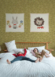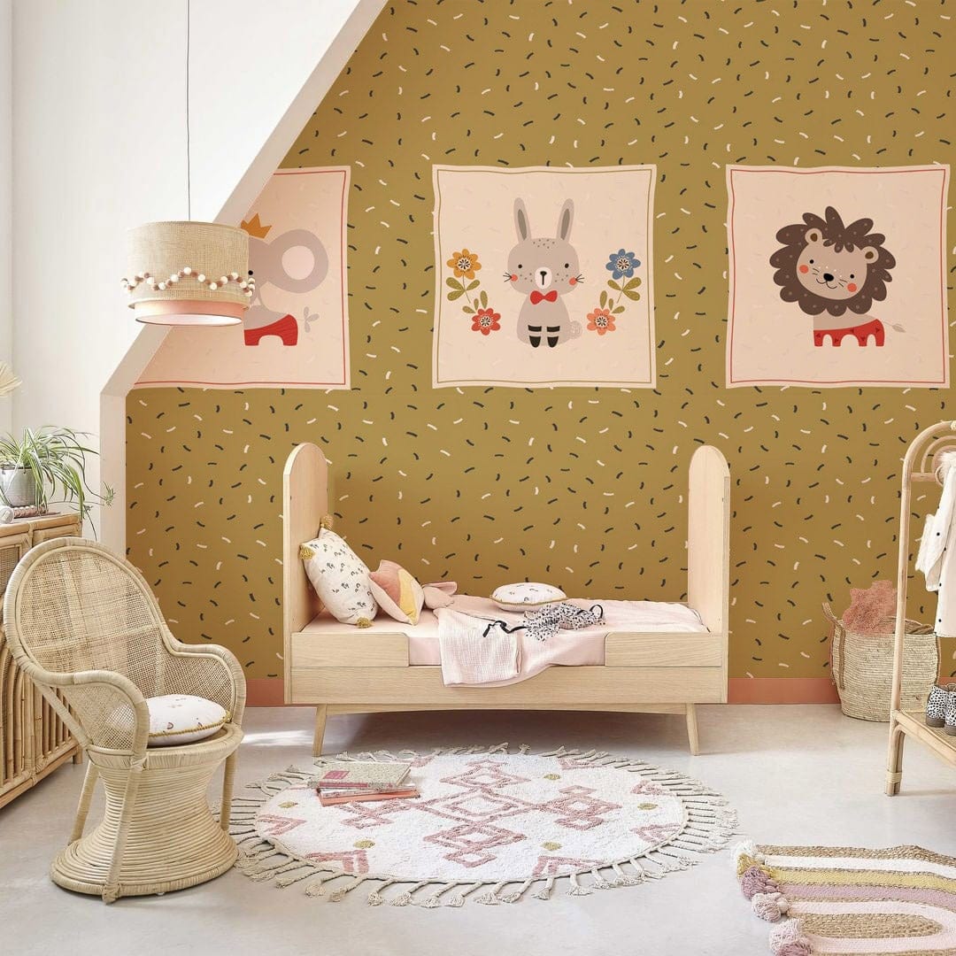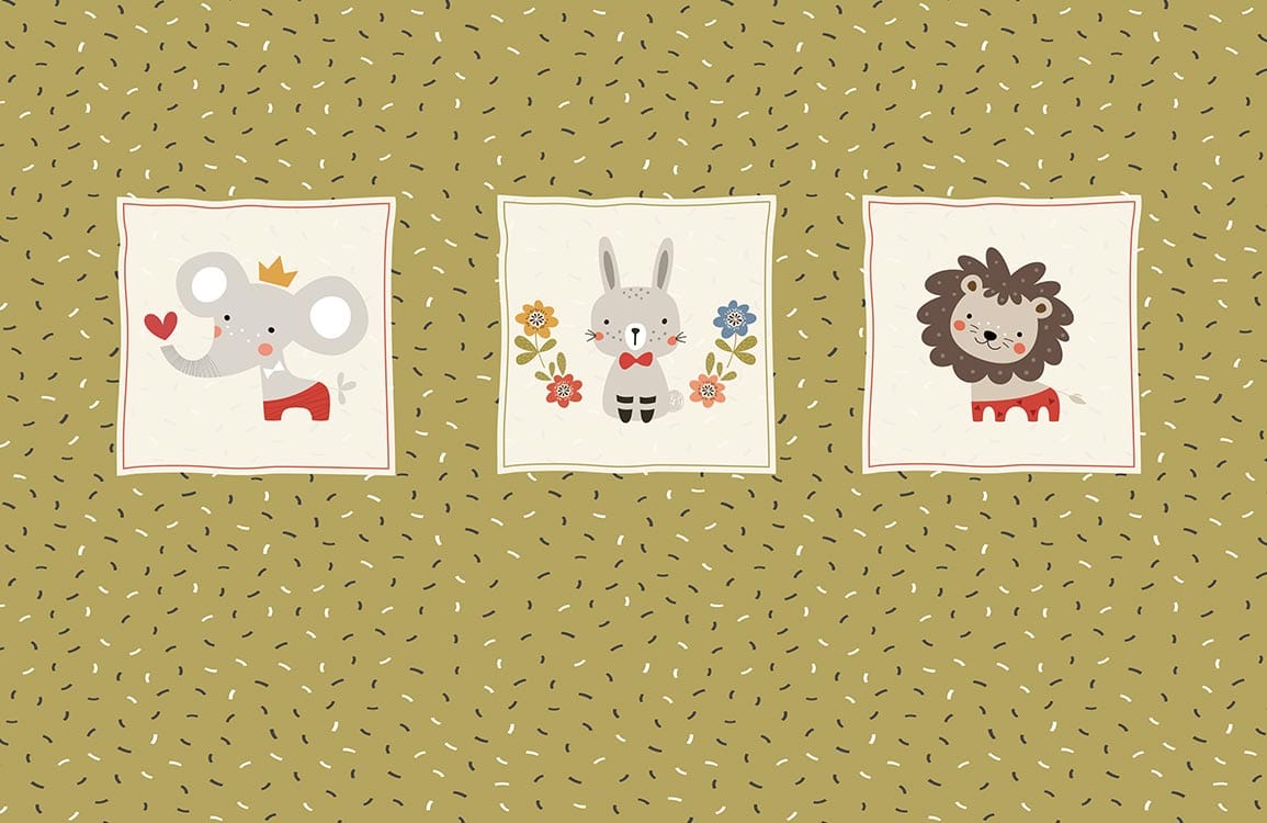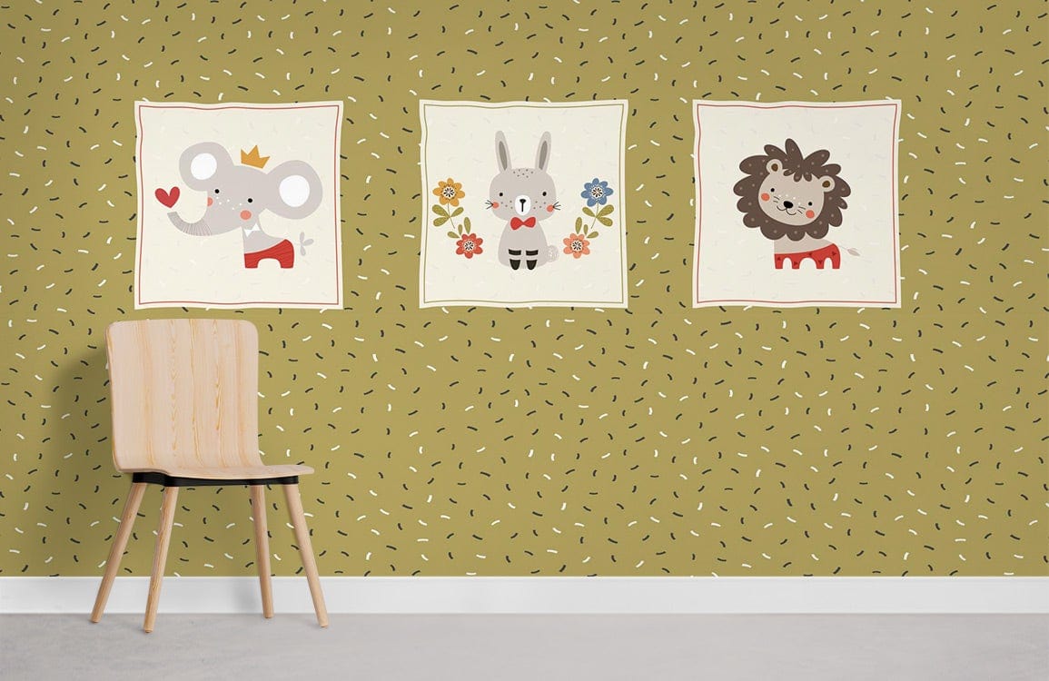 Bring a spectacular vibe to your space with this cute cartoon animal portrait Wall Murals. The artwork created in yellow-green tones brings simplicity and modernlism to the design. Use it as a feature wall in your little one's room with furniture of your choice as the wallpaper is perfect to pair with all home decoration.