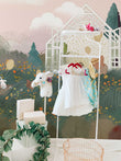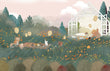 This adorable green forest motif mural wall covering is ideal decor to use as a background. This beautiful amazing painting of animals having a picnic on the peaceful grassland, wild flowers, trees and pink sky will be perfect for your child's bedroom and playroom. Interesting rendering with a natural atmosphere and a refreshing wall decoration perfect for your kids.