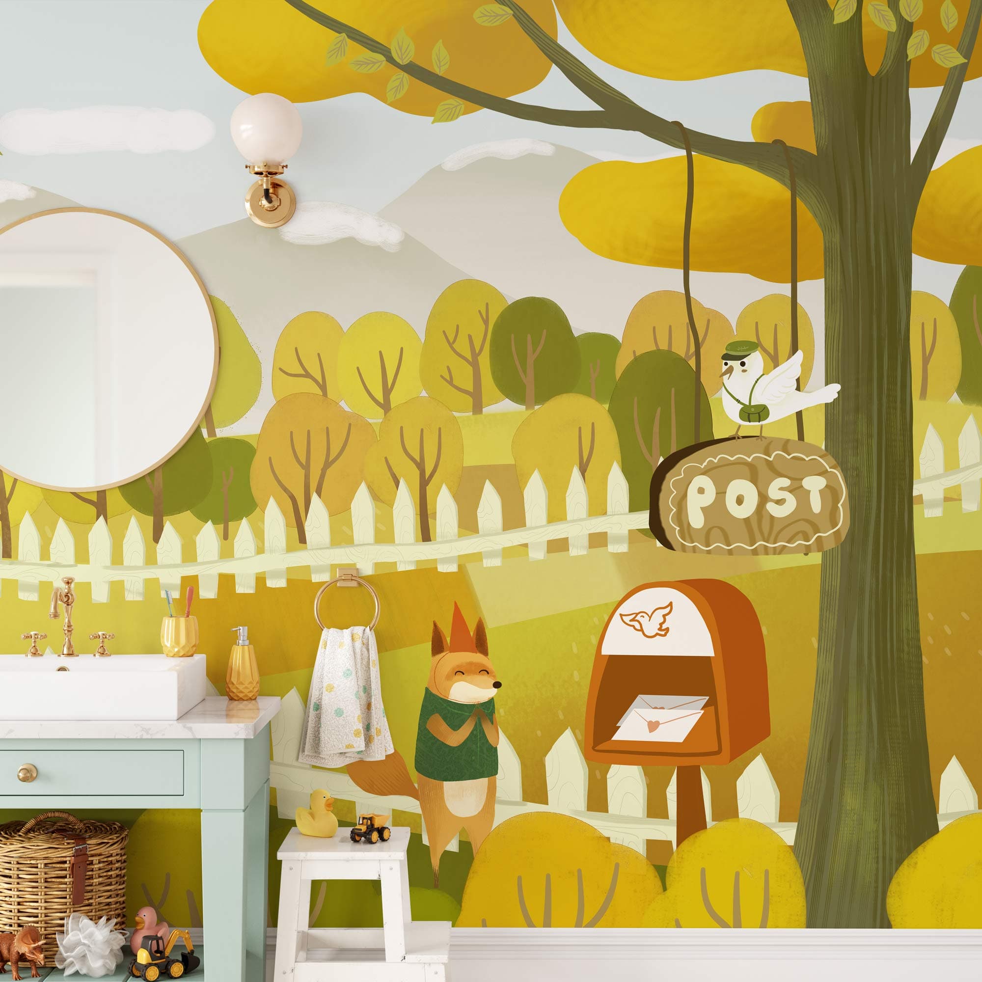 This cute animal Wall Murals is ideal decor to use as a background. The beautiful, amazing painting of animal postman sending letters for other animals in the forest will be perfect for your kid's bedroom and playroom. Interesting rendering with a natural atmosphere and a refreshing wall decoration perfect for your kids.