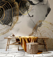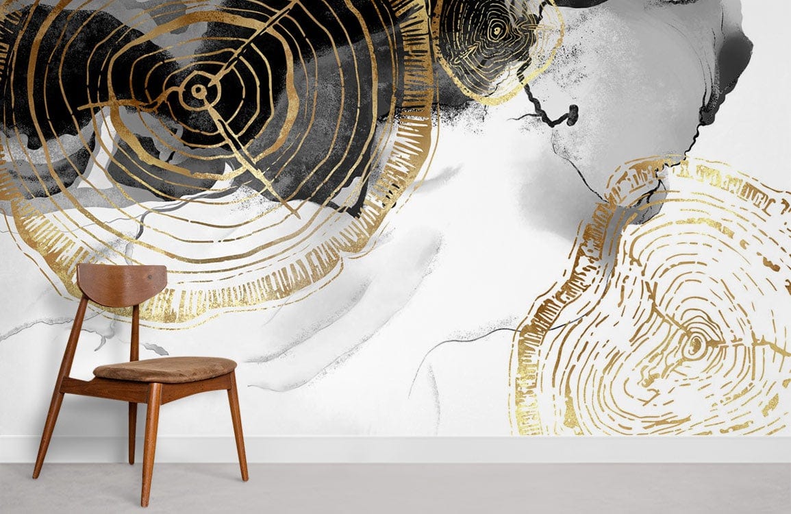 Create a soothing theme at home with this hand-painted neutral black and gold art deco?Wall Murals, a versatile design that will work with a range of rooms and styles. The creative annual ring design is perfect for expressing your creative style while keeping the space minimal. Why not experiment with this abstract style wallpaper in your bathroom, bedroom or living room.