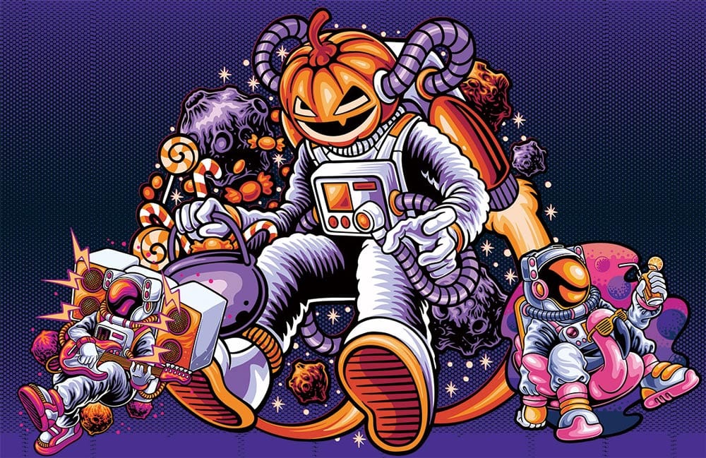 Welcome to the world of space trave! This Astronaut Bang Wall Murals features a design with scary astronauts perfect for Halloween. Depicting an astronaut with a gun and pumpkin head, with other details like space rockets and boom speakers, this mural also makes a great gift idea for kids, boys, or girls who love outer space! The format will make your wall come to life and will be a must-have wallpaper for any fan of space, astronauts, and the scary side of life! Optimized for high-definition printing, it's a great way to decorate your room!