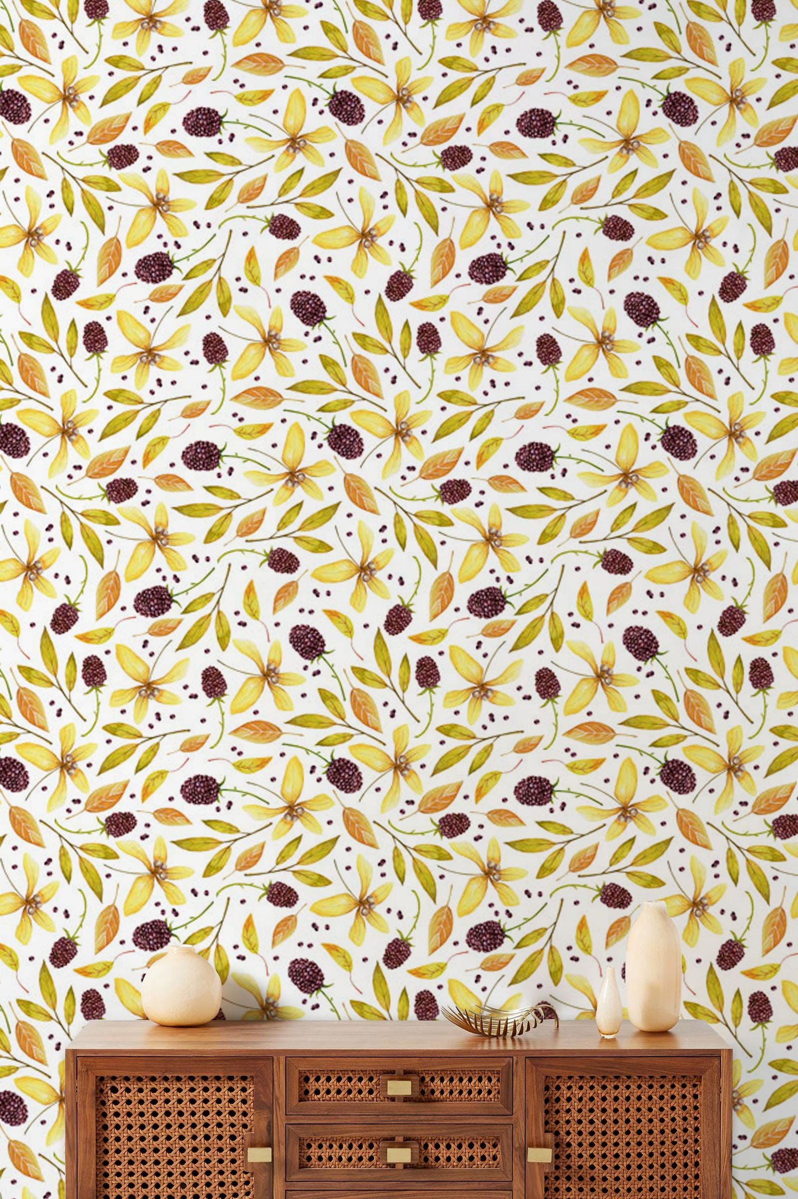 Create a gorgeous space with our leaf and pine cone Wall Murals. This wall mural is designed with repeated pattern of small autumn leaf and pine cone in white background, which will bring a vintage yet fresh look to your space. Perfect wallpaper that works well with all your bedroom, living room, kitchen and dining hall.