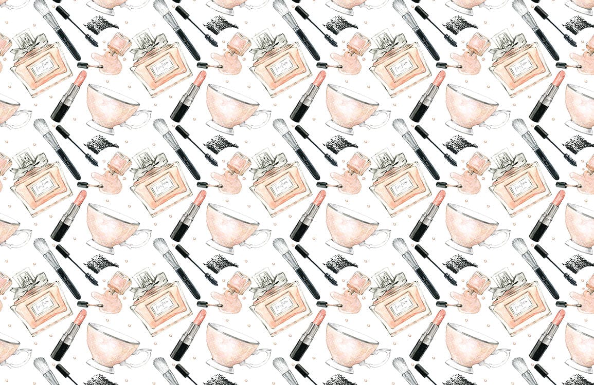 Enjoy a very stylish girlish theme at your room with this girly cute mural wallpaper of makeup products. The light pinkish shade of the products with the off-white background makes the design of the wallpaper so bright and eye relaxing.