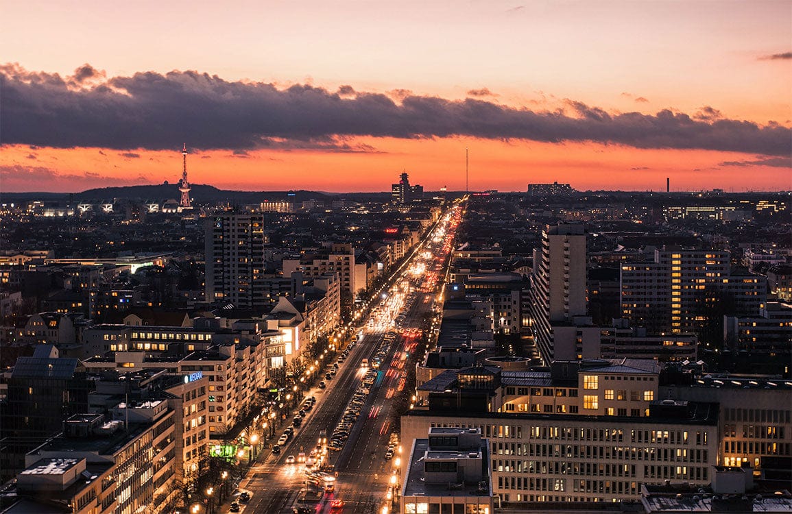 Transform your bedroom into a cozy and warm haven with the Berlin Night Wall Murals. This mural wallpaper features an overlooking view of the nighttime in Berlin, depicting the city's usual cityscape.