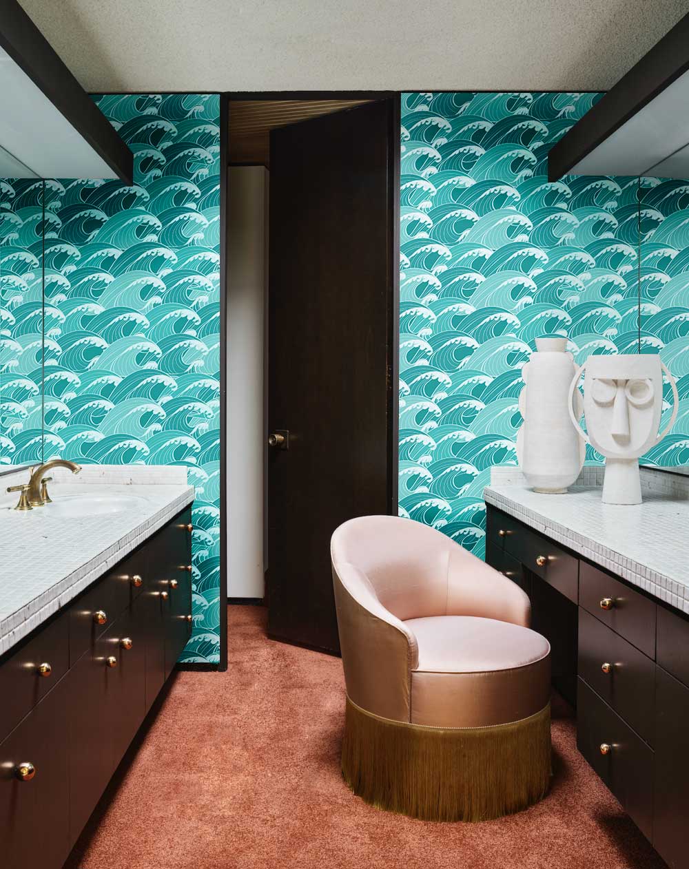 These waves pattern is so cute and chic for a perfect modern dressing room, fitting rooms and bathroom wallpaper. This Wall Murals design with the turquoise shades is so bright and so catchy and eye relaxing. The design will make your place look wider, use it at a narrow areas to widen the scale and style this wallpaper with white decorations and off-white couches and curtains.