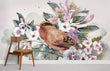 Enjoy the naturalistic beauty of our Bird in Flower Wall Murals. This mural features a brown bird perched on the middle of purple and white flowers, creating an understated yet charming look for your walls. This design is ideal for brightening up your living room, bedroom, or any other space in your home while flaunting an interesting vintage, hand-painted look that is great for floral-themed interiors and delicate glass furnishings.