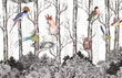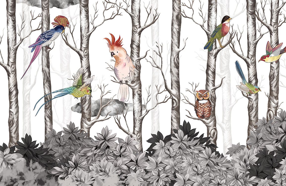 Birds' Forest makes a stylish and calming addition to your little one's nursery or bedroom. Birds' Forest is a mural wallpaper that carries the natural world in, with stunning birds' forest trees and black and white tones. Bring the outdoors inside, complete with delicate blossoms and little flying creatures with this bird wallpaper. Each tree, branch, and bird is in hand-drawn design to create an authentic and charming image. Perfect to combine with other bird items, this mural will spike the interest of your kids into having a feathered friend.