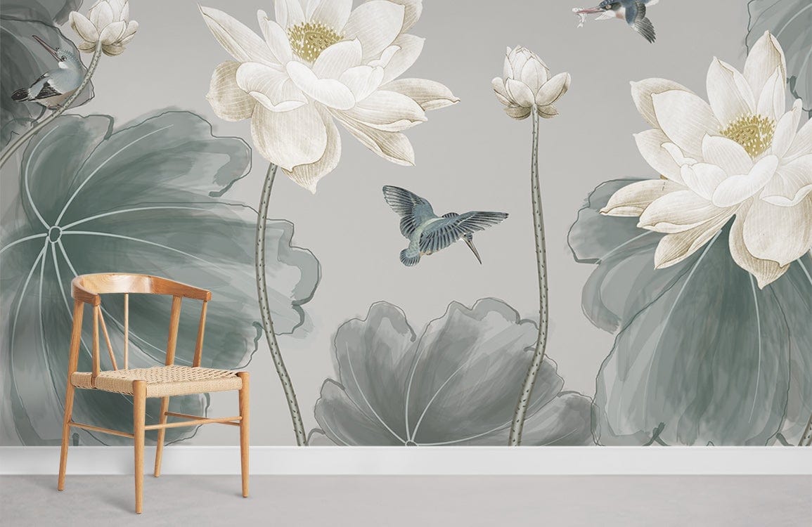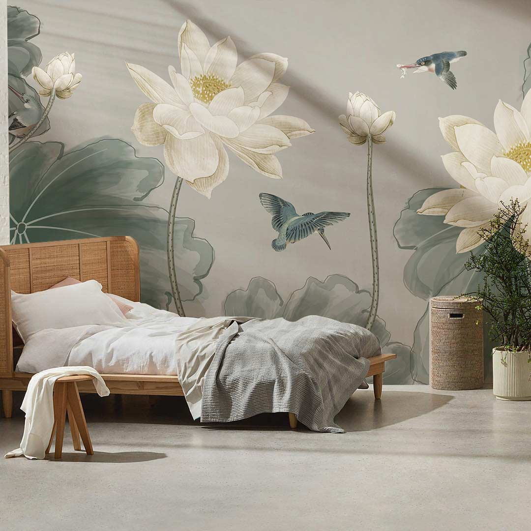 Give your space a new lively theme by our new White lotus Mural wallpaper with the flying birds all over it. The dynamic movement of the birds in the wallpaper gives it life in addition to the simplicity of the colours in the wallpaper. The shades of grey and white make it so simple and chic that can match anything. So, unleash your imagination and feel the freedom and simplicity by one of the newest modern designs. Don’t miss this simplicity at your place and don’t forget to complete the look with light decorations to shown the beauty of your choice. Use it at your bedroom and add white chiffon curtains for more flowy and freely movement style. Or add it to your reception or hall and feel the freedom whenever you move around at your place.