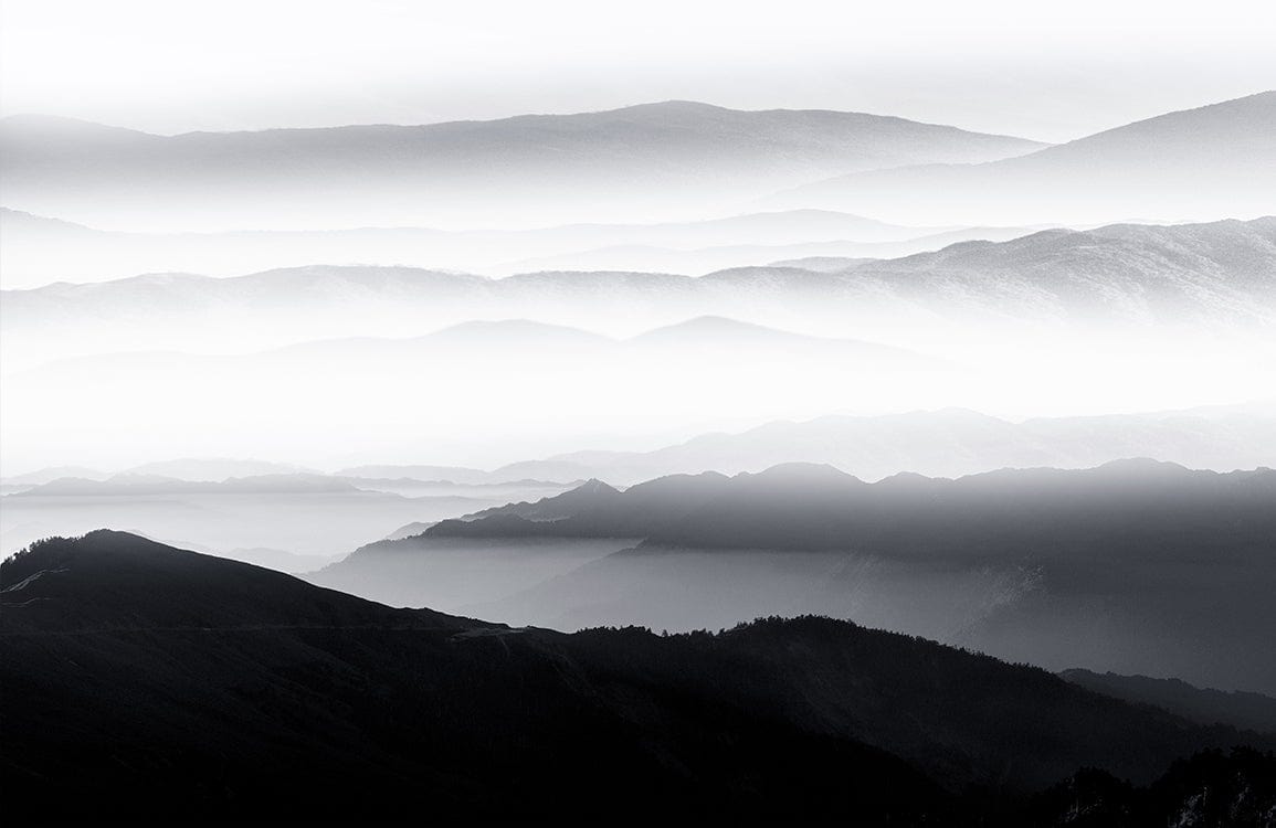 Want to take in the views? Our black mountain view mural wallpaper is an extraordinary idea. In a black and white colour palette, this silvery-hued scenic layout features a design of a mountainous landscape in the distance embraced by a thick fog, creating the ultimate wow factor. A unique way to bring nature into any room for a charming appeal, it's just the thing for a mountain retreat or mountain house theme. This mural must be installed in your panels right away.