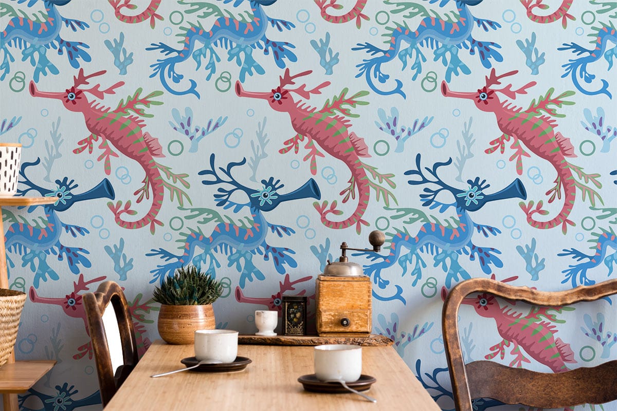 The seahorse-eye view of the sea is swimming straight out of your walls! You've got fins, you've got fishy friends, and we've got a whole new world for you to explore. With our cool and retro Blue and Pink Seahorses Mural Wallpaper made-up of blue and pink seahorses patterns hanging on your wall, you'd be in sea-horsie heaven every day. Capturing colourful seahorses playing along the ocean floor, this ocean animal Wall Murals depicts a lively scene perfect for any room. Put our brand-new mural wallpaper up in a room with a fun story to tell - like your little one's bathroom or bedroom - and make it 20 times more fun.