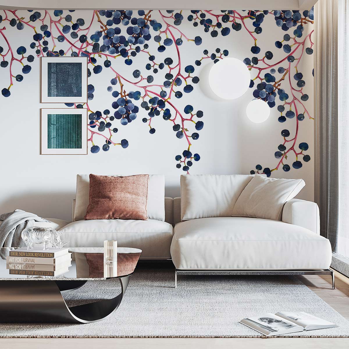 Love the delicious and juicy feel of a fresh blue berry? Now you can bring the sweet aroma of nature right into your home with this beautiful, vine-inspired wallpaper. Our Blue Berry Vines Wall Murals is a perfect addition to your kitchen or bathroom. With a design inspired by nature, this gorgeous mural creates an enchanting ambiance that's complemented by the soft tone of the wallpaper. The appealing blues and purples make it easy to create a fun and modern style in any room of your home.