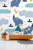 Your child will love this cute animal Wall Murals. The cartoon hippos and crocodiles in pastel blue colours will surely steal your heart and add more childish and fun to the space. Use this design to instantly revamp your kids¡¯ room in minutes and watch your child dance with joy. Perfect kid's room wall mural that works well with all kinds of modern furniture and home decors.
