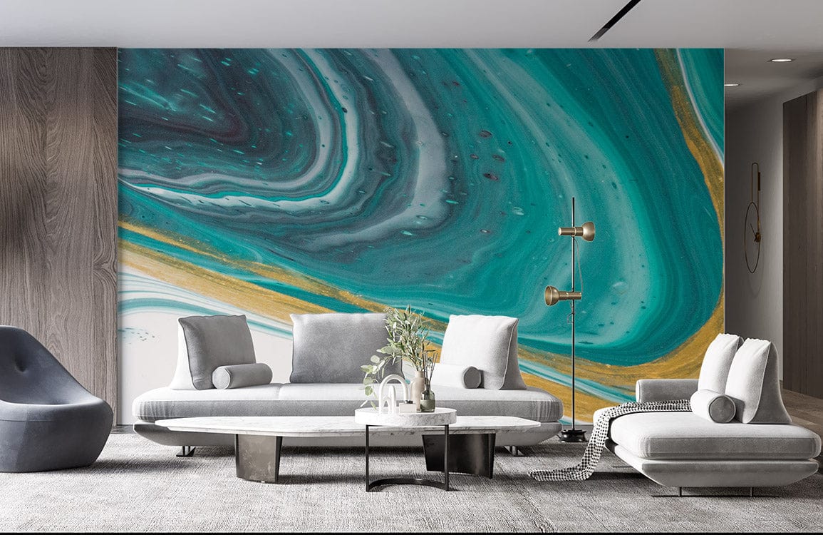 If you are looking for an eye-catching and impressive Wall Murals that can fit your rooms and art decorations, then this blue planet marble design Wall Murals is your perfect choice. This faux marble wall covering designed with blue and gold tones will create a sense of space and 3D atmosphere for your space.