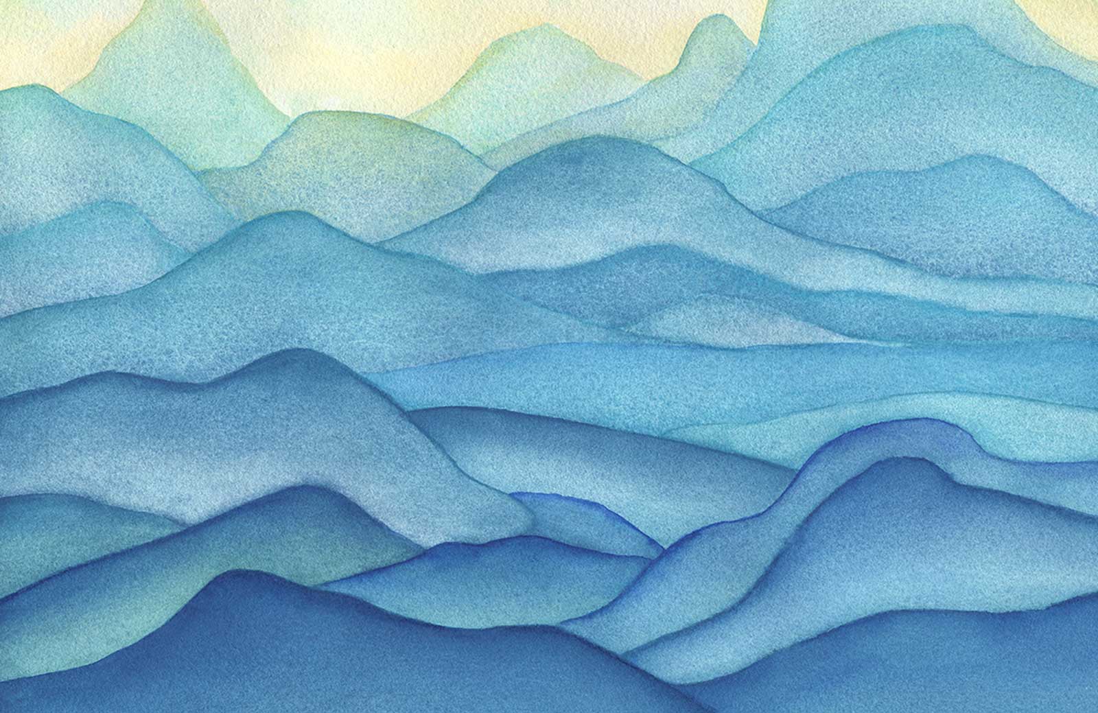 Open up your space with this blue rolling mountain landscape wall mural.The soft blue and creamy yellow mountain designed in water colour effect wallpaper can light up space within minutes and add a charming feel to your bedroom, living room or dining area. Compliment the look with modern furniture for a beautiful and dramatic effect.