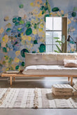 Use our blue Spot Flower Mural Wallpaper to decorate your walls. Spots of blue and green on an off-white background give this pattern a pop that's perfect for a bedroom or living area. If you want to infuse your room with a sense of fun and energy, this wallpaper is perfect for you. The blue and green spotty design has a vintage feel to it and is sure to brighten any area it is installed in.