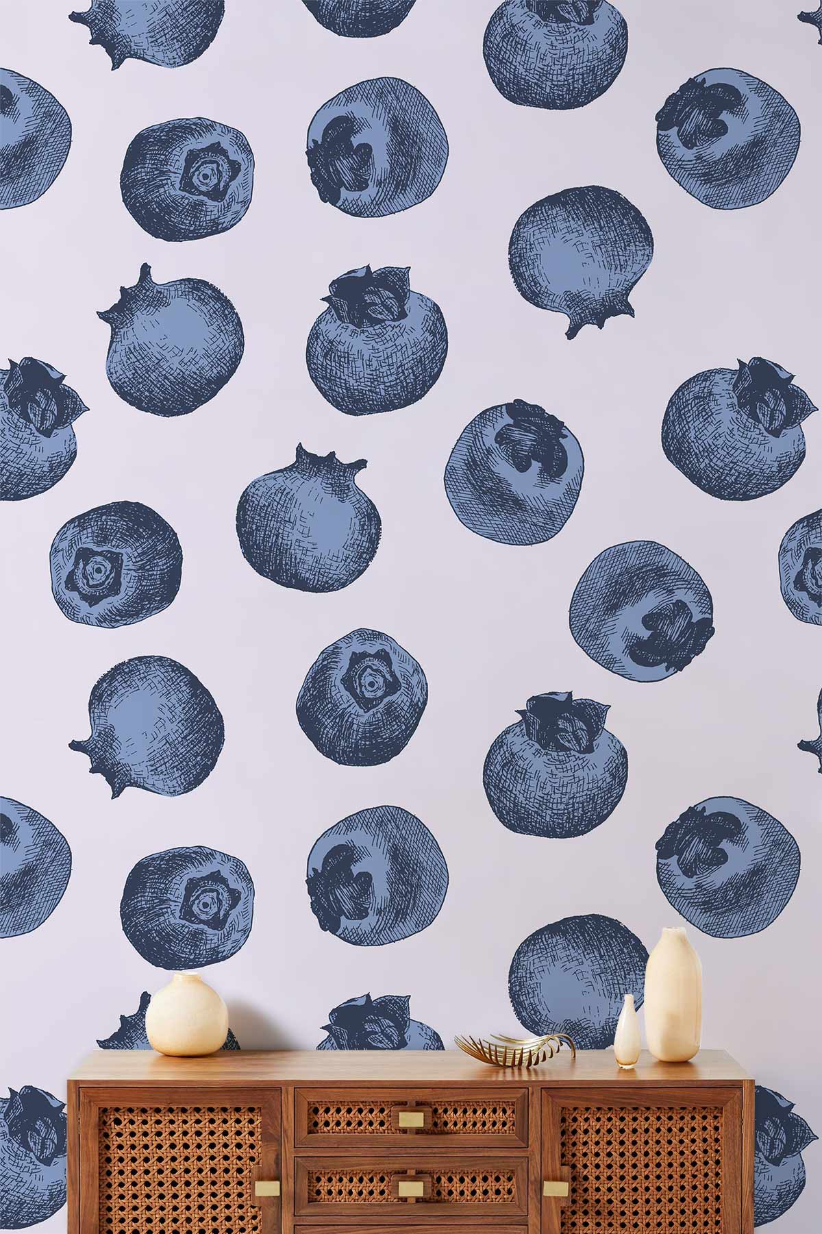 Want to give off colour and life to your walls? Bring home this wall-sized mural of blueberries on our Blueberries Mural Wallpaper. The fruits are drawn on a white background with a hand-sketched pattern. This vintage-styled wallpaper is designed to flaunt a sweet and summery touch to your interior, especially for those who want a more rustic and natural look in the kitchen, dining room, or living room. The most beautiful part is the drawn blueberries layout is sure to put a smile on your face and brighten up any wall space!