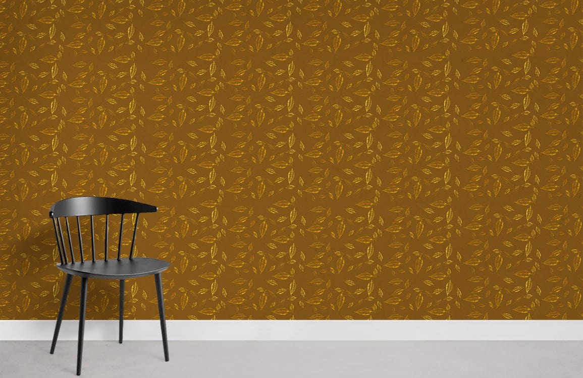 Create an elegant space with this small leaves Wall Murals. This repeat pattern design of small golden leaves in brown background will instantly beautifies your walls with its simple grace. Ideal wallpaper for your bedroom, living room and especially for your kitchen and dining area.