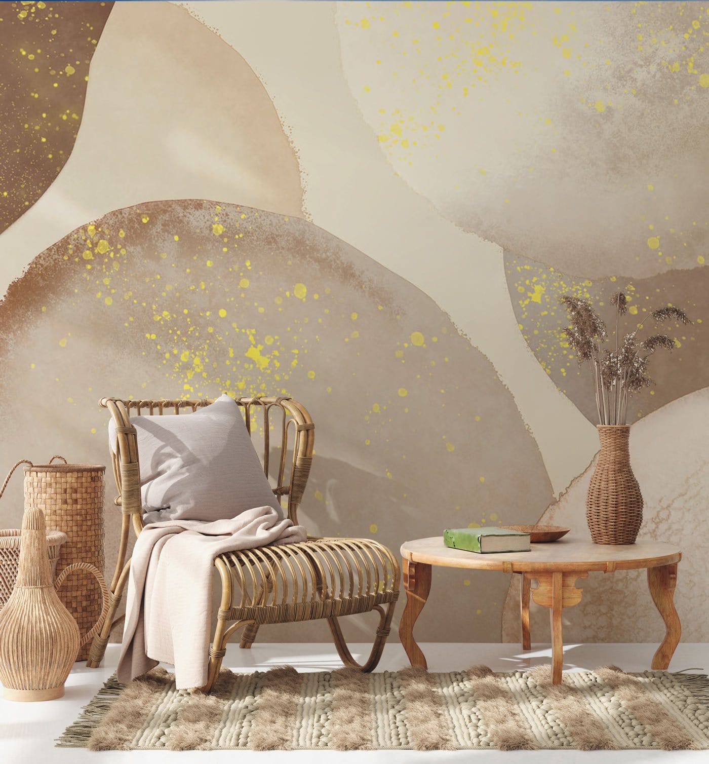 If you're looking for a stunning, statement-piece Wall Murals, this brown watercolour wall mural is a perfect choice, especially if you love the idea of creating a cozy, magical space within your home in which you can relax. This unique brown with golden glitters wallpaper is a guaranteed conversation piece and the soft colours and mesmerising shapes in this design can add brightness and mystery to any room.