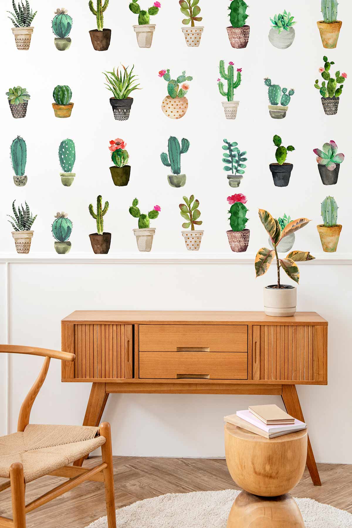 Boost energy into your place coming from the beauty of nature in greens. In this Wall Murals of cactus flowerpot will make your home look lively and full of life and very relaxing. This mural wallpaper is a perfect match at your bedroom for more positive vibes with modern decorations. If you are opening your flower shop soon and you are looking for a very attractive style that attracts your clients impressed by the place and cannot resist your products. Style this mural at your kids’ room and enhancing their knowledge and give them information about these cactus types in the mural wallpaper.