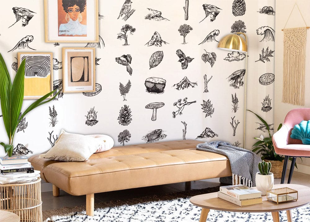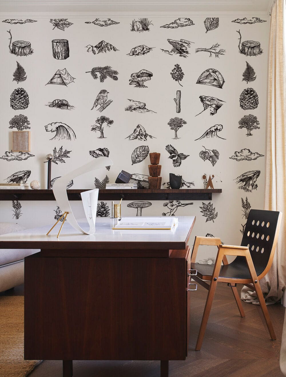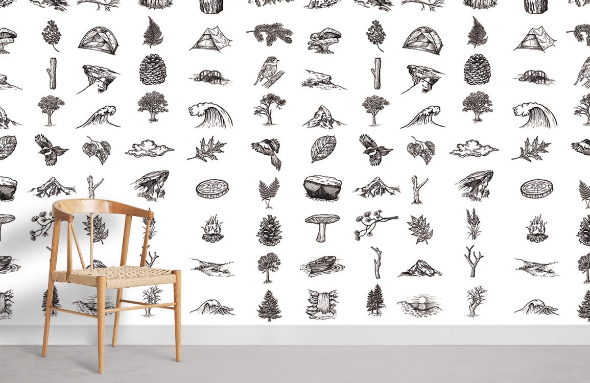 Camping on a hill is a great experience as you are surrounded by beautiful nature! This Camping on Hill Wall Murals will make your room look like there is a forest with trees and tents on the wall. This camping mural is the perfect wallpaper for anyone who loves to get out into the great outdoors. The scenic design features a cute and quirky camping supplies sketch format, with everything you need to catch some sleep under the stars! Whether you are on a camping trip this summer or just dreaming of relaxing in the great outdoors, this mural is sure to bring a little bit of comfort and fun to your interior.
