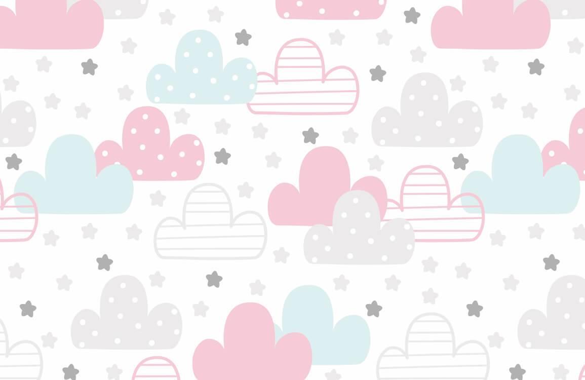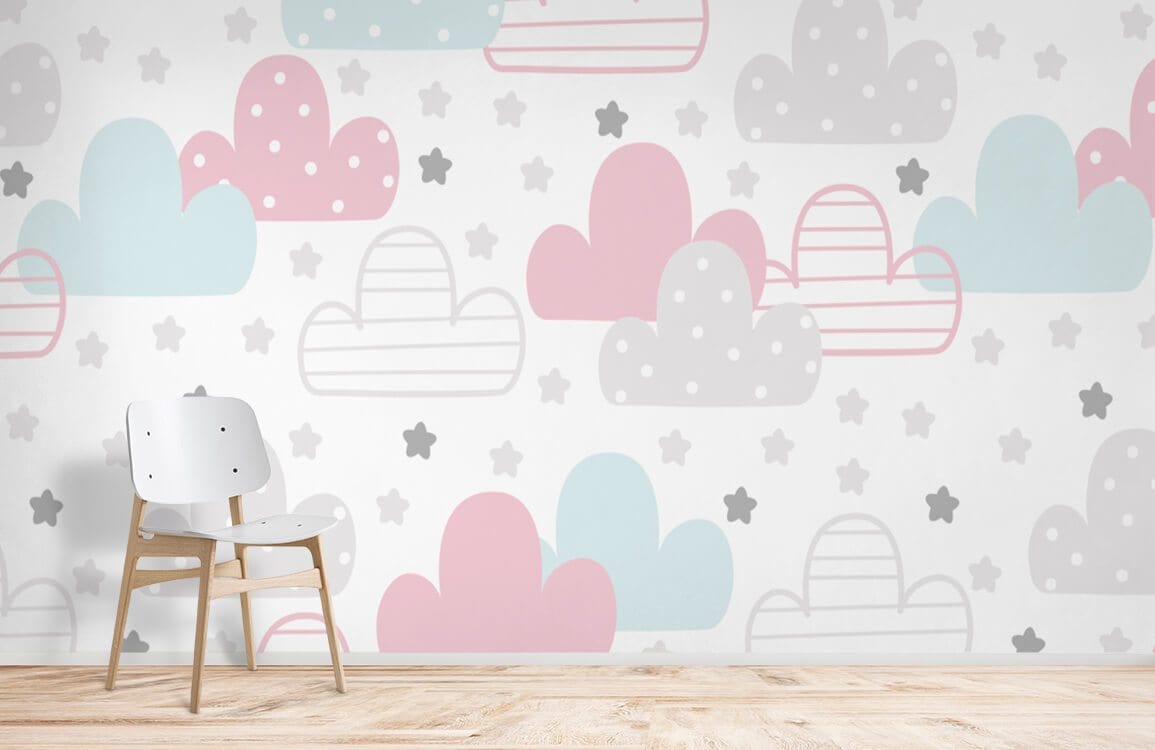 Decorate your little one's room with this heartwarming clouds Wall Murals. The soft pastel cloud motifs along with the stars lend a charming look to the overall design. Why not use this cute wallpaper in your baby girl's bedroom or playroom for a dreamy atmosphere.