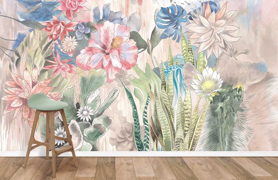 Splash some colours onto your walls with this beautiful flowers Wall Murals. This stunning colourful flower clusters painted in vivid water colour effect wallpaper will look great especially in your living room and bedroom. Enjoy the made-to-measure wall mural and brings natural close to you in your interiors.