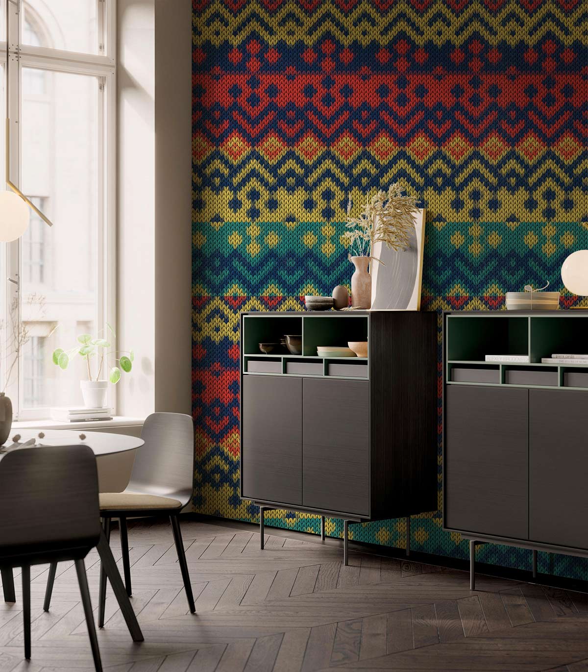 If you are looking for something unique and imaginative, you can choose this Wall Murals, multi- coloured sweater texture. The texture of this Wall Murals is sweater-like. When you put this design on your wall, it seems like you are surrounded by a huge sweater. It’s warm and comfortable. You can install this design in your living room, dining room and hallway. And this Wall Murals will bring your home a unique appeal.