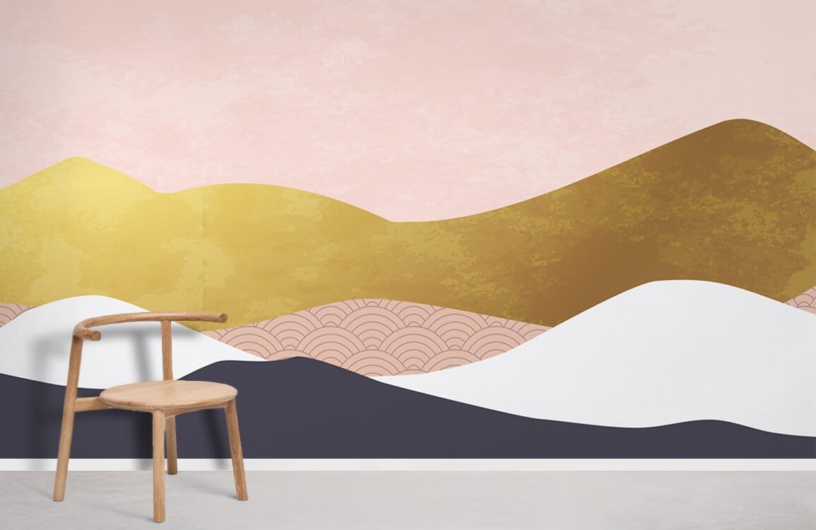 Transform your bland wall into this elegant colourful wave Wall Murals. Be impressed by the beautiful pink, white, navy and gold-effect layers, which will add a gold metal effect as well as a feminine touch to your space. Perfect wall mural to use in your living room, bedroom or bathroom.