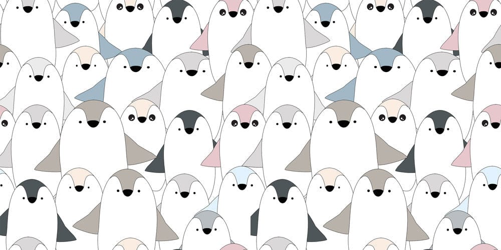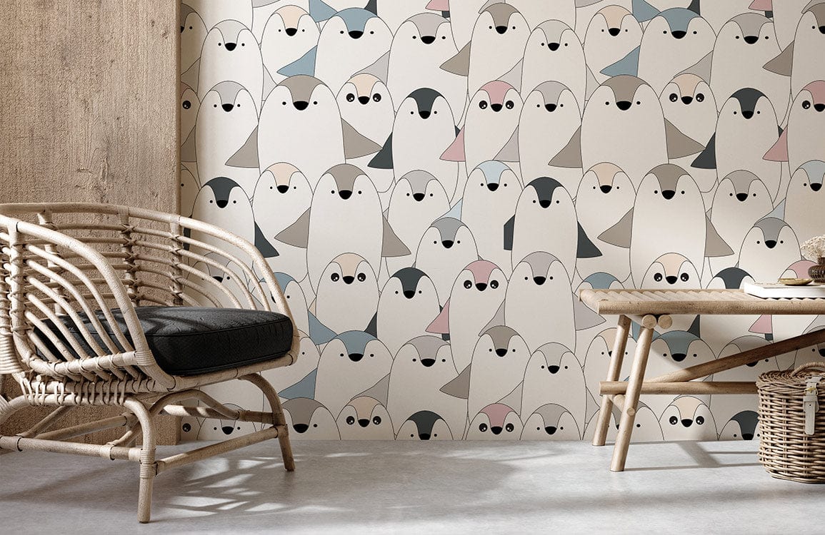 A colourful, playful mural makes a perfect piece of art for any interior. It's entertaining to watch from the opposite side of the room, and it adds a dynamic touch. This Curious Penguins Wall Murals depicts a lovely flock of penguins with wide eyes and stiff postures that are full of questions as they glance at you. This charming animal wallpaper will brighten up your house and make it seem more friendly. This children's mural will provide a soothing touch of fun to your living area, making it ideal for kids' rooms, nurseries, and playrooms.