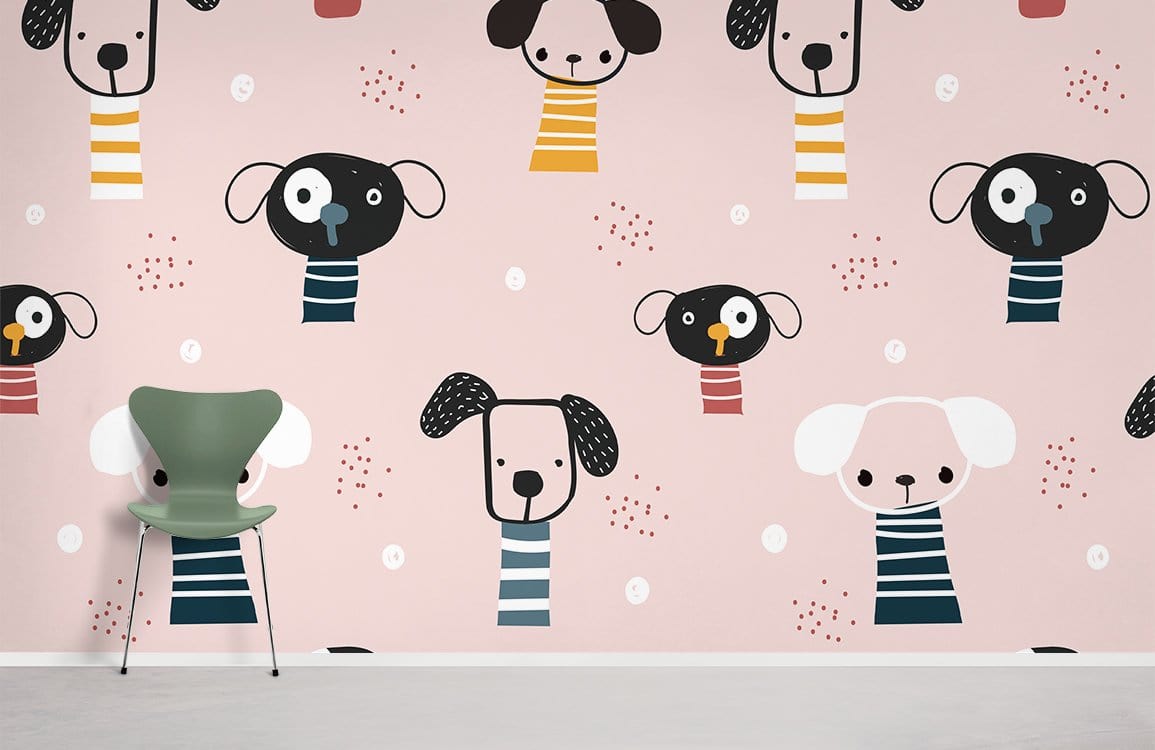 Your children are going to love this cute dog pattern Wall Murals! This adorable cartoon dog print wall mural under pastel colour background is suitable for all your bedroom or kids/nursery rooms. Place this aesthetic pink wall mural to your wall and enjoy the happiness and joy it brings to you and your children.