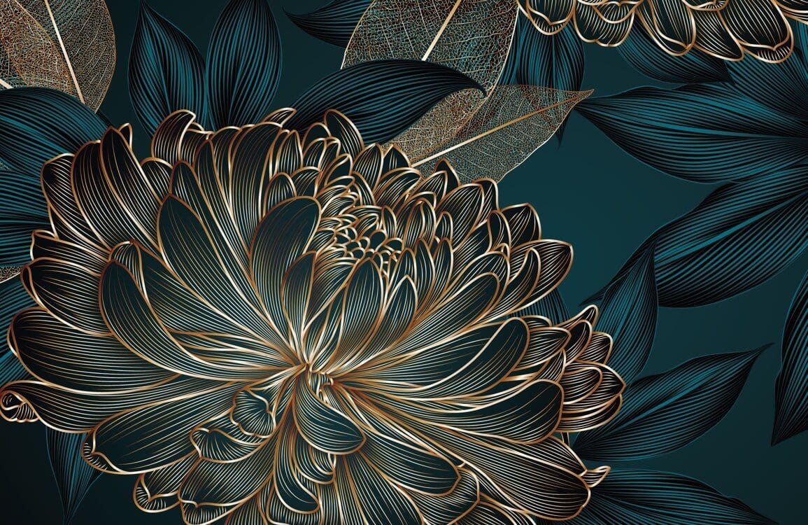 Add a touch of glamour to your walls with this eye-catching Wall Murals. The spellbinding motifs of chrysanthemum in gold accents, complete with the details on the petals, make it a sight to behold. Decorate your living room with this consummate refinement that spells pure luxury. Impress your guests with this masterpiece of a wall mural.