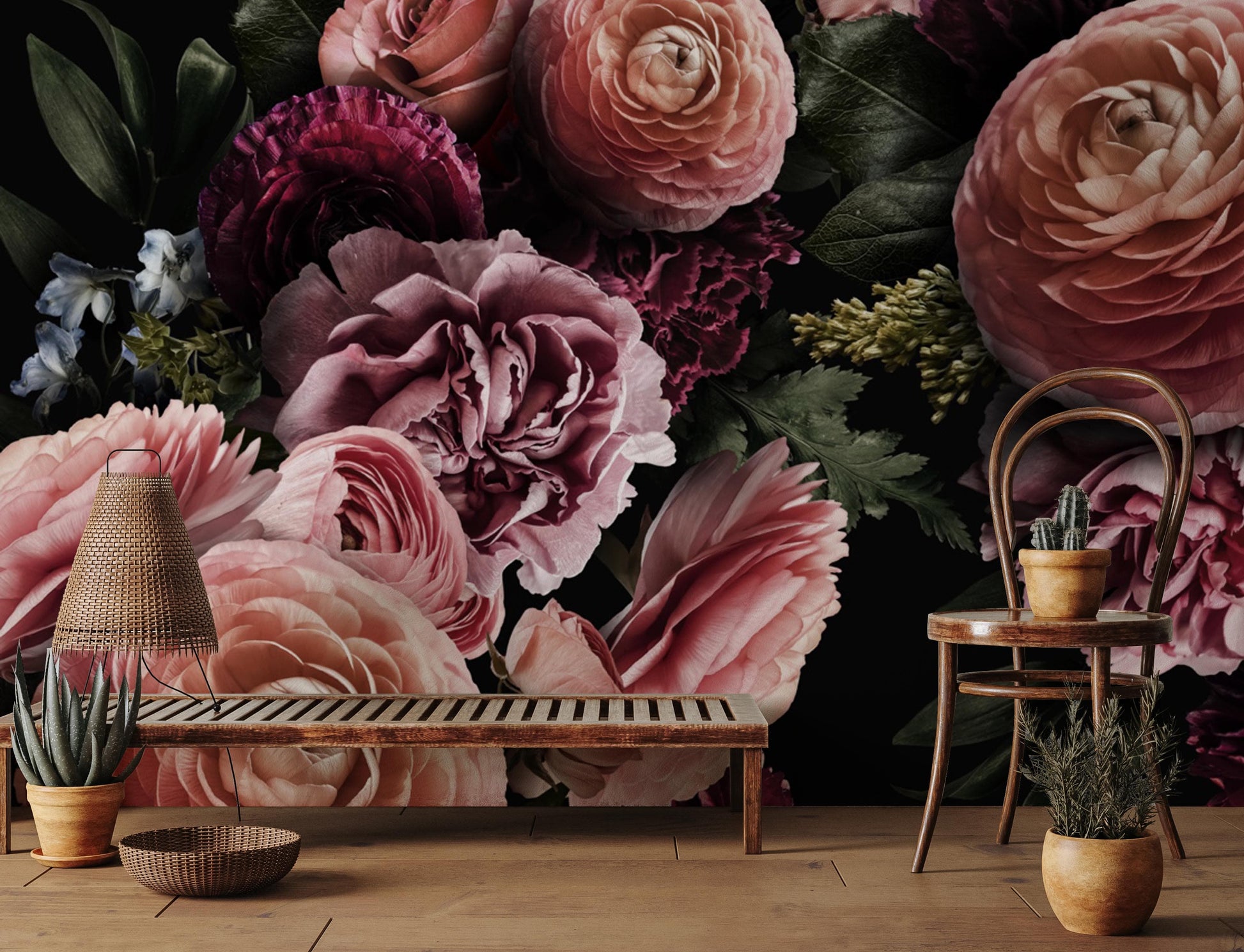 Create an elegant space in your home with our flower Wall Murals. This beautiful flower bouquet in dark tone will surely add a touch of calm and elegant to your home. It will look amazing in your bedroom, dining room and hallway. This wall mural will also perfectly match your furniture and any other home decorations.