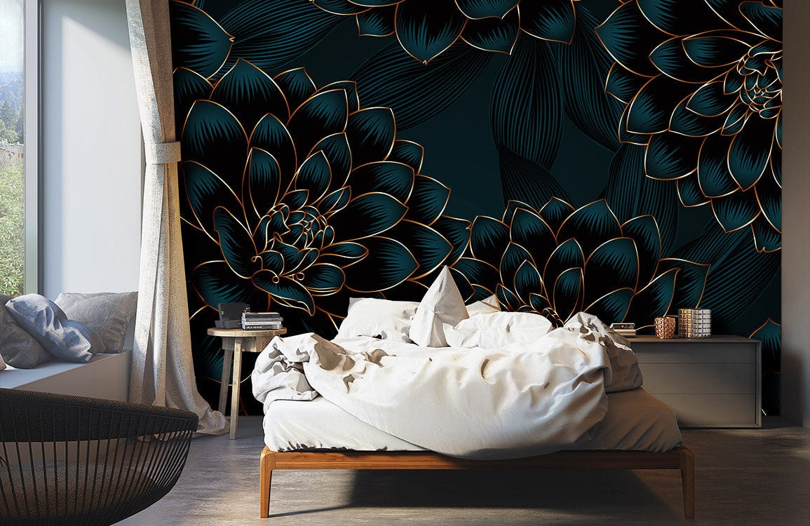 Add a touch of glamour to your walls with this eye-catching flower Wall Murals. The dark and elegant motifs of flowers in gold accents, complete with the details on the petals, make it a sight to behold. Decorate your living room with this consummate refinement that spells pure luxury. Watch your guests get inspired by your discerning tastes in interiors with this masterpiece of a wall mural.