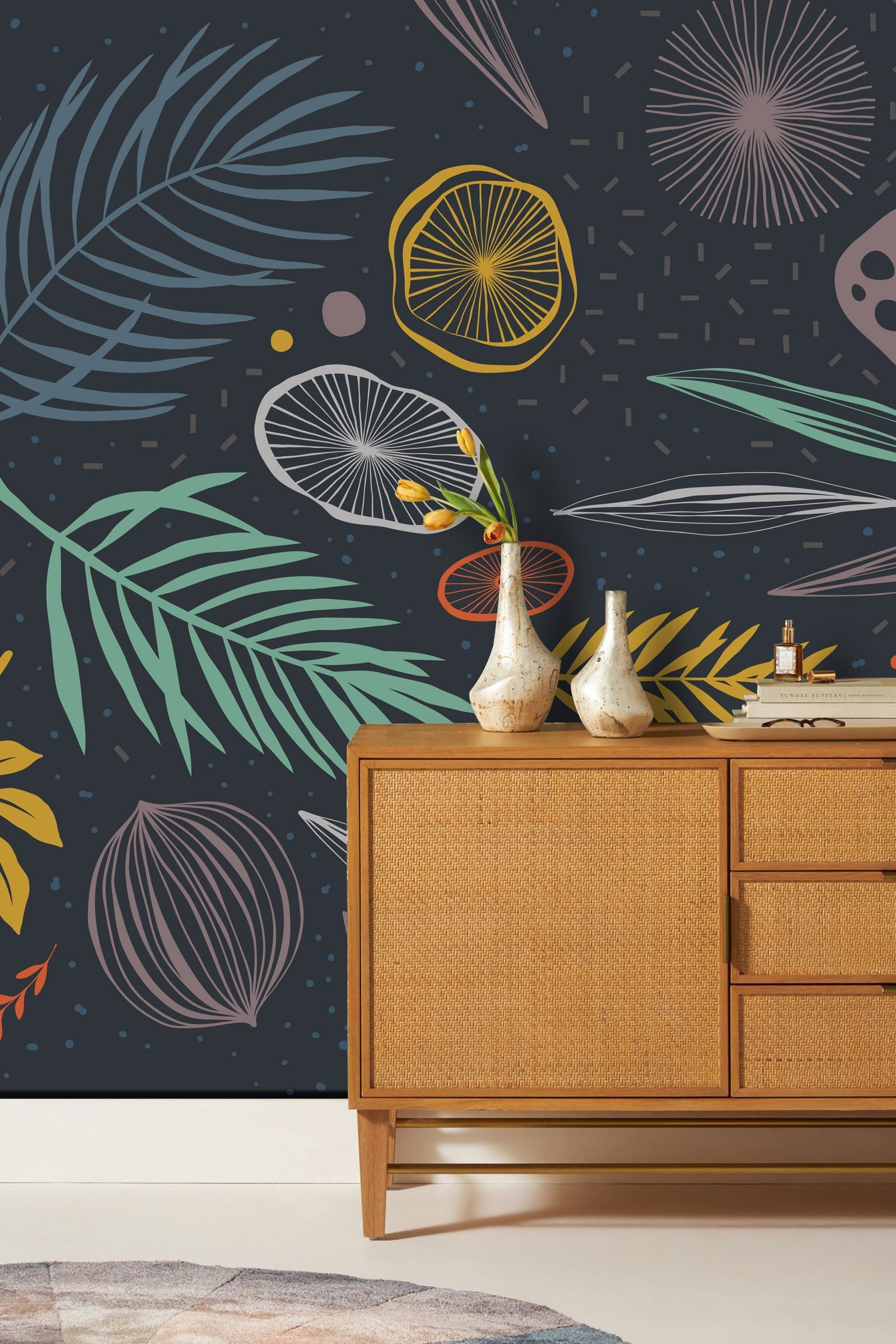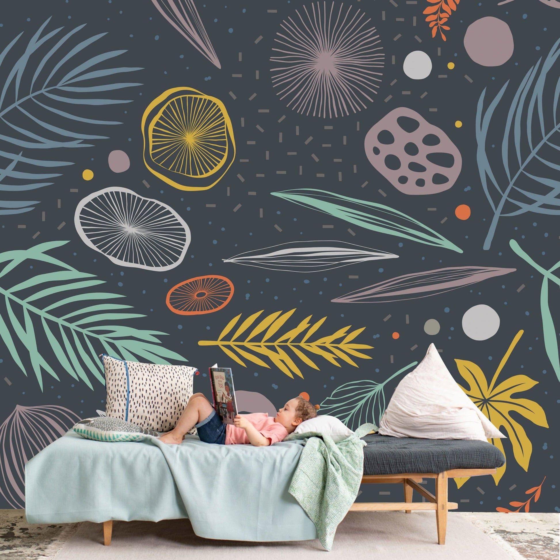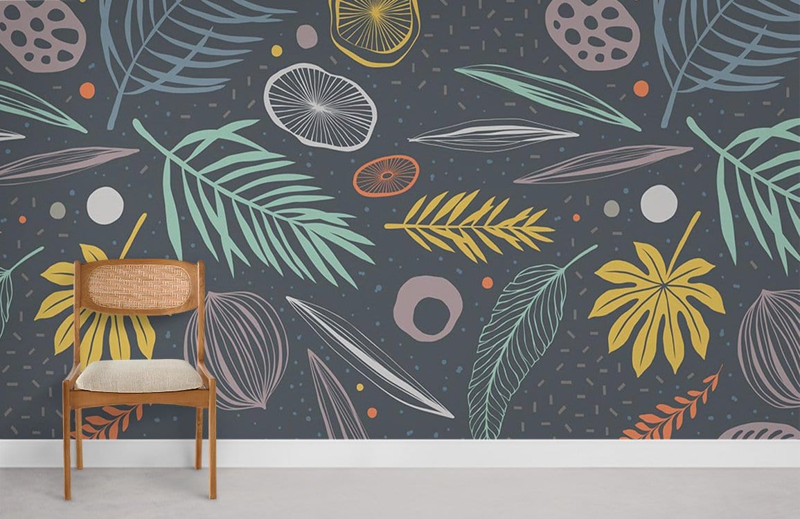 Find the magnificence of life in the lap of nature with this beautiful leaf pattern Wall Murals. The pastel leaf motifs the perfect way to bring natural environs home. The dark grey background gives a cool and stylish look on the overall picture. Use it to accentuate a feature wall in your living room, dining area and hallway for an instant fresh feeling.