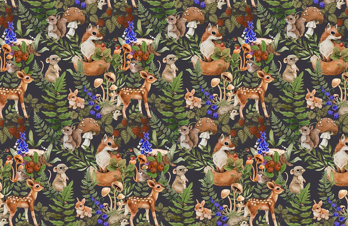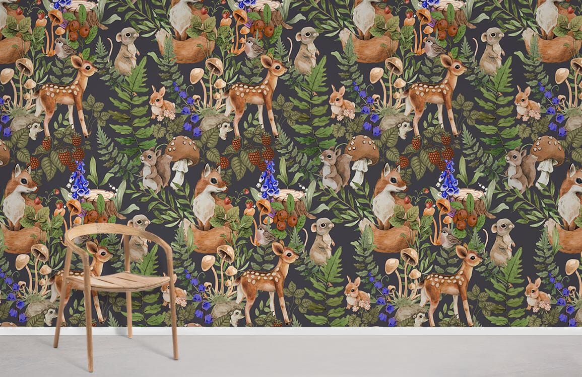 Inspire your children with our beautiful forest animal Wall Murals. This Wallpaper is designed in repeat patterns of cute deer and squirrel with mushroom and leaves, which will steal your heart. Bring your home some freshness and natural touch with this wall mural. It will look great in your living room, bedroom and dinging hall.