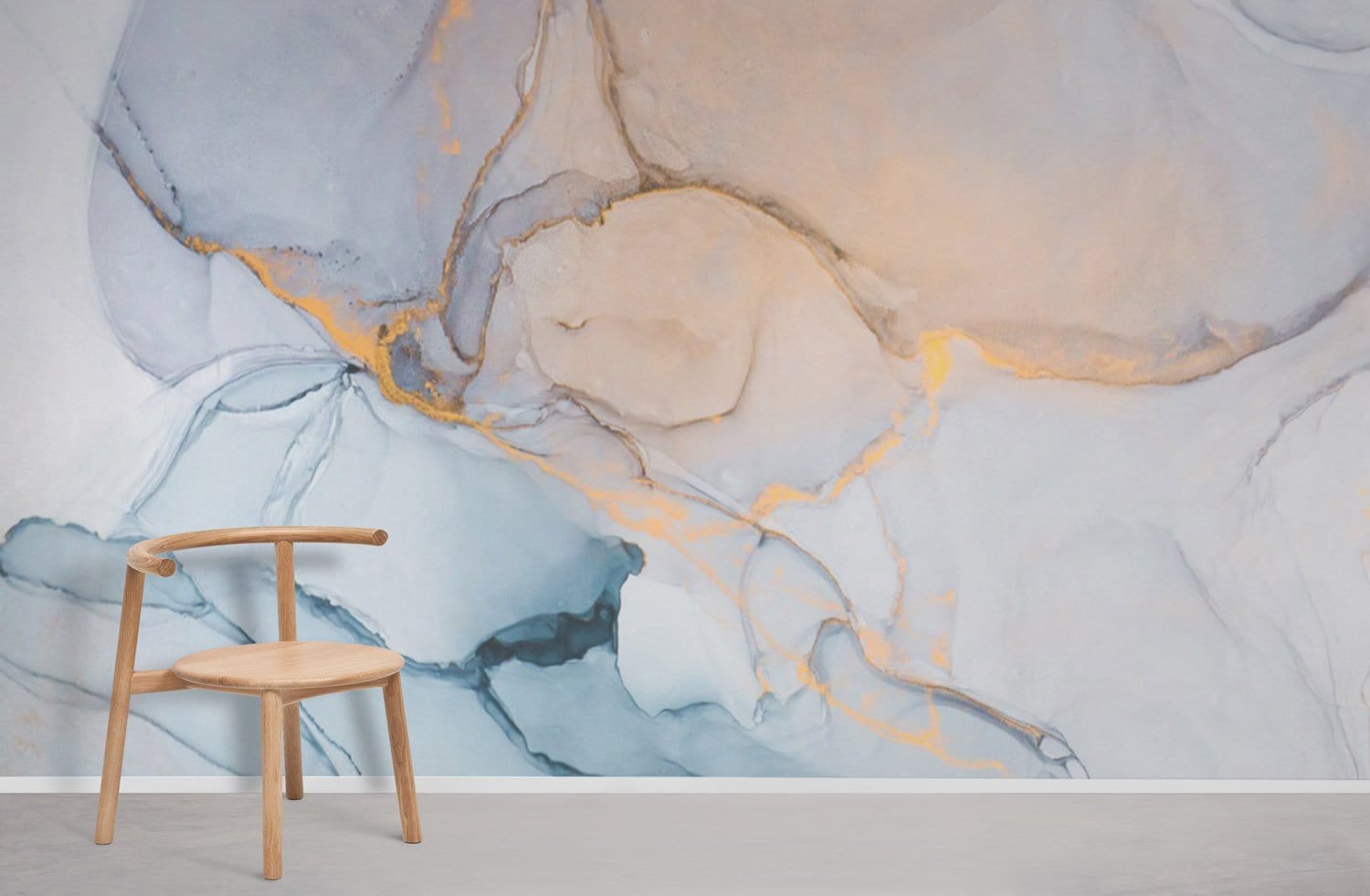 If you are looking for a stylish and dreamy Wall Murals that can fit all your rooms and art decorations, then this dreamy blue & gold marble Wall Murals is your perfect choice This faux marble wall covering designed with soft blue and gold tones will create a comfortable and peaceful atmosphere for your space.