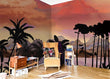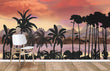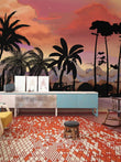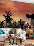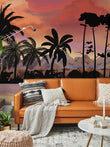 Chill in this beautiful sunset on the beach under palm trees Wall Murals. The bright orange sunset, pastel grey mountains in contrast with dark palm trees will provide you with a strong but comfortable visual impact. Ideal landscape Wall Murals for your living room and dining area. Pair it with your wooden or white furniture will be great.