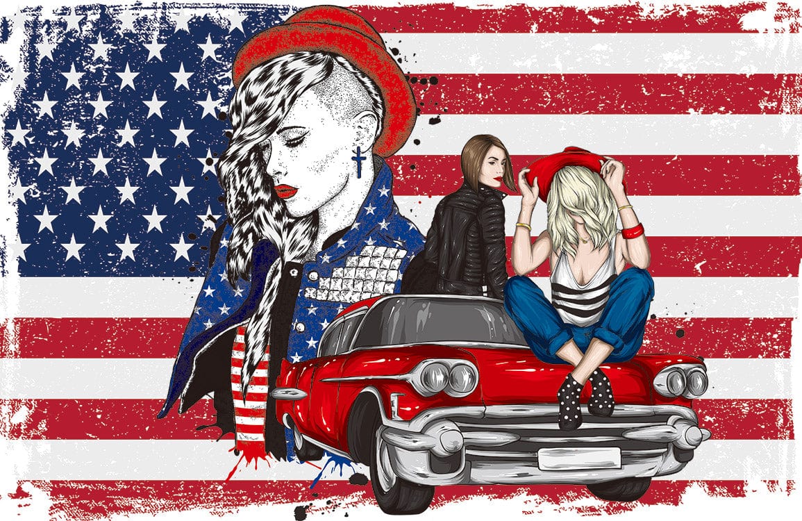 Show your style and patriotism at once! This Flag Beauty Wall Murals features bold fashion icons with a striking US flag design as a background. A fresh take on an old classic, the US flag becomes a fashion runway for an array of stars and stripes. This fashion and lifestyle-themed wallpaper will no doubt become the center of attention in any interior, adding extravagance and a fashionable vibe. The large-scale design is easily installed and repositioned if you need to move it around your space.