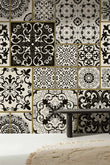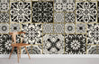 Welcome the floral tile wall mural into your space and create a modern home style. This tile wallpaper is designed in black floral theme under a off-white creamy background, which is a perfect match to any room with sophisticated, modern, or contemporary furniture. Available in peel & stick and permanent paper types with child-safe inks. Get ready for a stunning interior design!