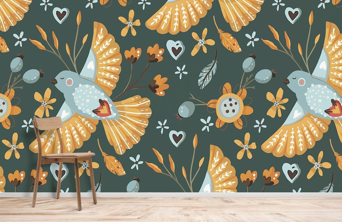 If you want a jungle wallpaper to spice up your space, then choose this on-trend flying birds Wall Murals. The big cute birds and small flower motif under a soft forest green background give it a vintage yet stylish feeling in your rooms. Why not use it for your bedroom, living room or dining hall and pair it with your modern furniture or home decors.
