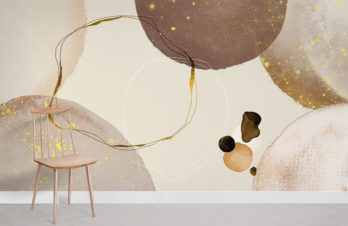 This Wall Murals brings together abstract lines, and colour blocks that is modern and innovative. With latte brown, ivory white golden glitters and black dots, the soft tones of this piece help bring the mural to life and will help to open up your interior space. Why not use it in your bedroom, living room or dining room to add a ultra-modern look.