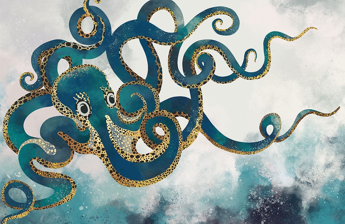 Tell your guests that this is not just a room, but it's an adventure. This ocean animal mural wallpaper will create a splash of quirky fun to your space. With a cool off-white background, it features a friendly giant octopus layout and pairs perfectly with other colours in the design. Let your imagination run wild! Walls is our first wallpaper range, so we've designed it to be simple for you to apply and in a wide variety of available colours to fit any of your home decor theme.