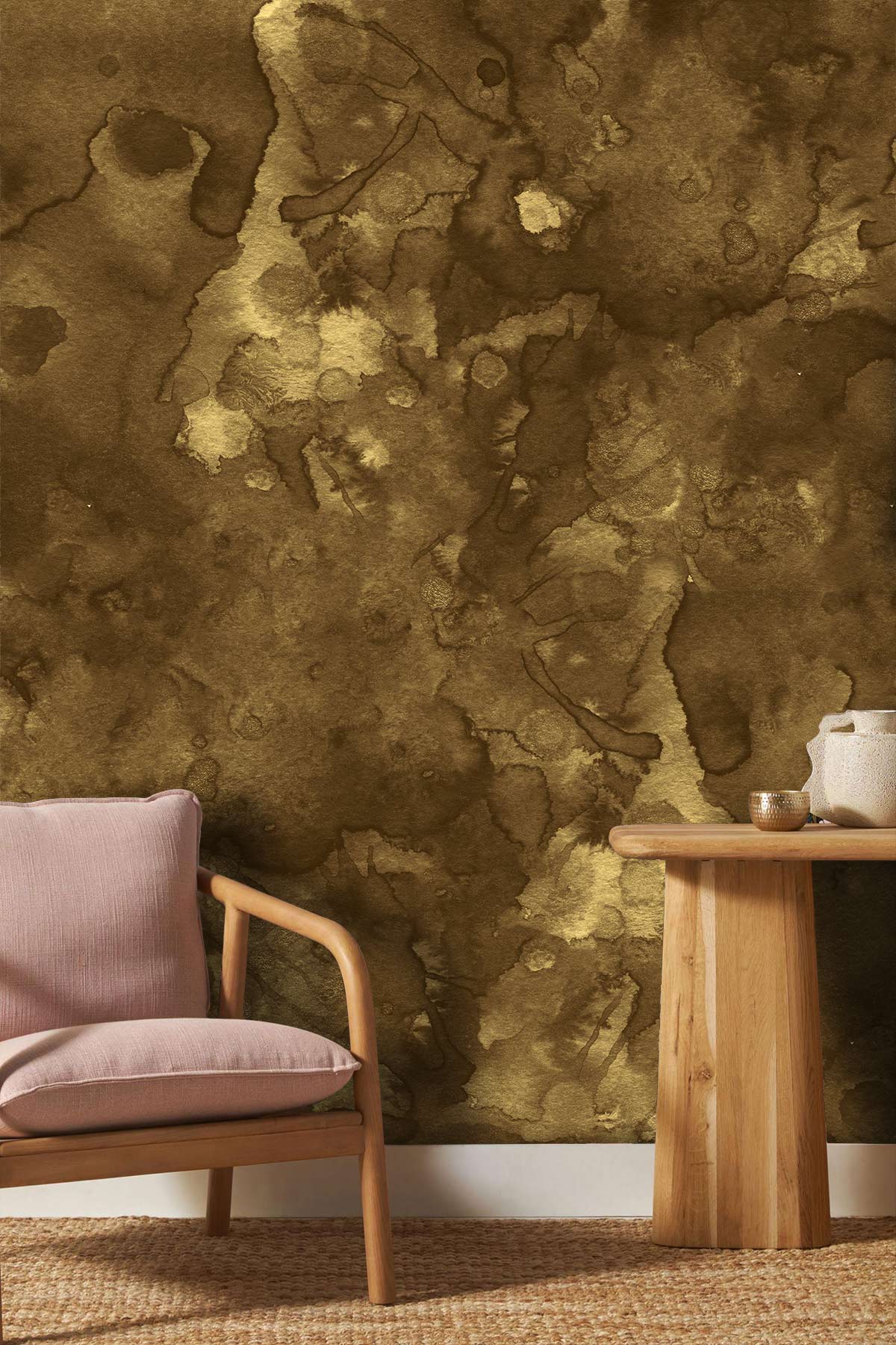 Contemplate the beauty in this dyeing pattern mural wallpaper with the golden brownish shade that will add a classy taste to your walls. The design is so simple yet very elegant and can be styled in different ways. This design is perfect for professional area like conference rooms and offices. Also, this wallpaper will be perfect at your Living room or your bedroom and can be styled with both modern and classic furniture.