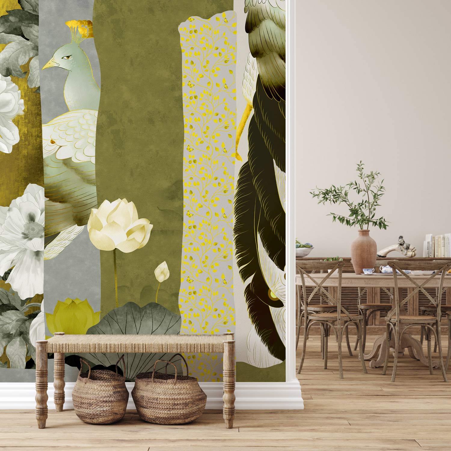 Bring your wall to life with this elegant art deco Wall Murals. This wallpaper combines a variety of beautiful images in a hamonious way with simple grace. Add a peaceful and calm atmosphere to your living room, bathroom, bedroom and dining hall. Work perfectly to your modern style furniture and home decors.