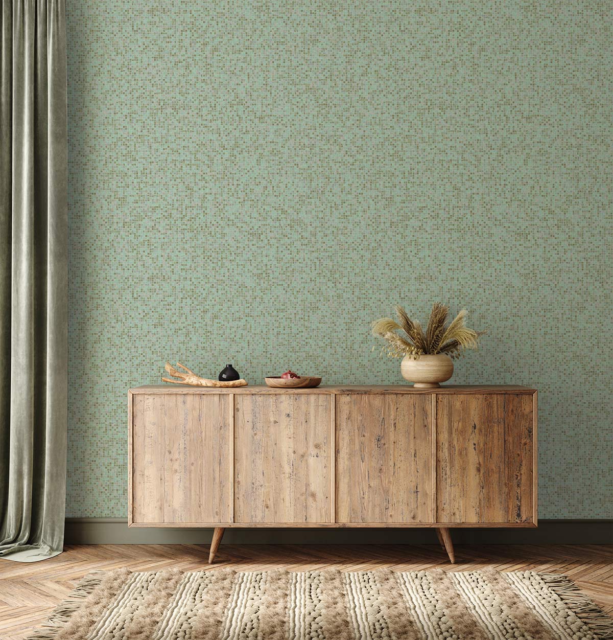 Presenting the large mosaic pattern on our Green Mosaic Mural Wallpaper in various shades of green and neutral colours! The square elements of this geometric pattern wallpaper are filled in with a deep green tone. While this brick-style wall covering is a unique feature on a flat wall and is ideal for giving your modern home individuality and uniqueness. This wallpaper is simple to apply and remove, and it does it without leaving a residue on your wall!