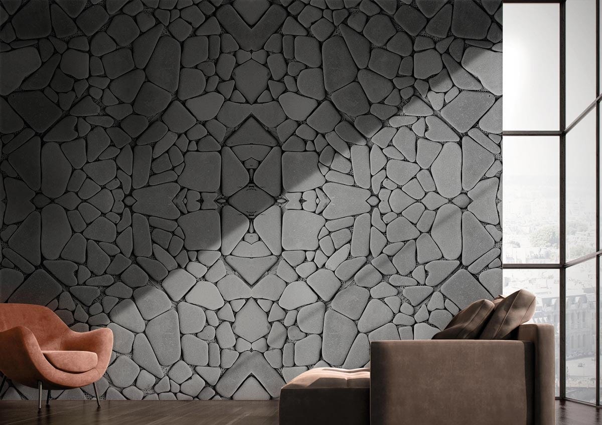 For the first look you might feel that these are just some random grey stones set together, but with deep looking you will get lost in the art of setting up these stones that forms a geometrical view like a piece of art. Each stone is just perfect for its place. This grey stone mural wallpaper will do exactly this trick with your place. It will make it so charming and full of depth. The design is so simple yet so elegant. The design is so modern and so rich that suits the black and white decorations or those who love the black theme, this design will be just perfect with white or light grey chiffon curtains and carpets for the contrast, and fits all rooms and will give the feeling of wide spaces.