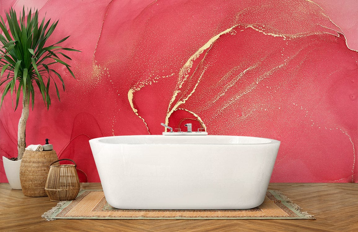 This marble effect Wall Murals is enhanced by gold lines of its cracks and veins. The beautiful guava red marble is decorated with gold metal lines, which will level up your plain wall and the entire atmosphere of your space.It will work brilliantly in your bathroom, living room and hallway. Use this wallpaper to create a wow moment for your home.