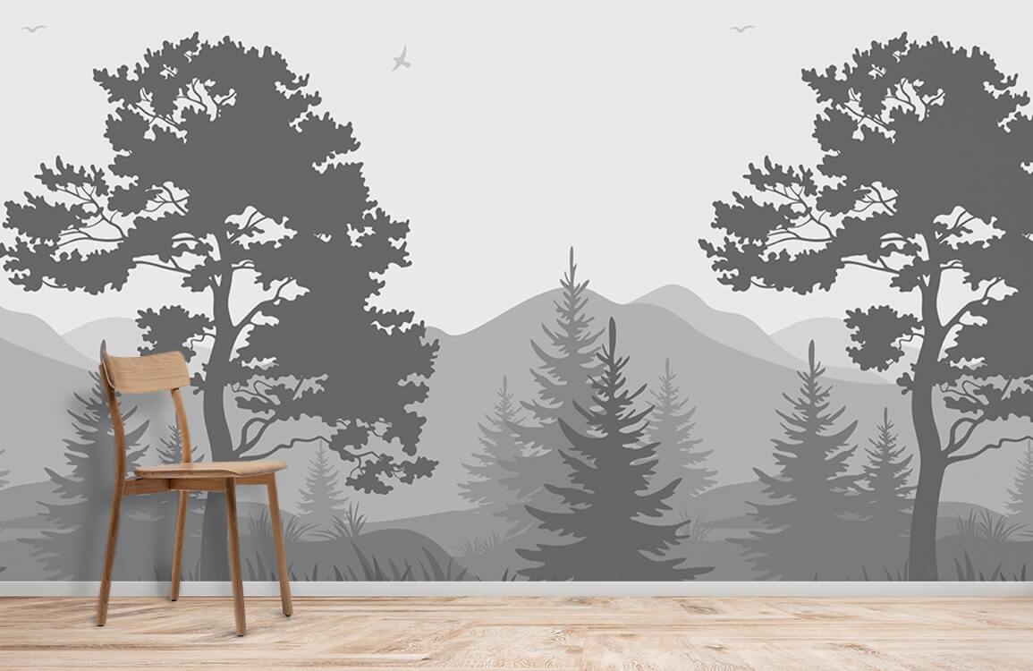 Breathe in that fresh mountain air with this hazy mountain Landscape mural. Let us take you back to that memorable hiking trip with our this foggy forest and mountain wall mural. Pure, calming and serene, this forest wallpaper will turn your home into a place of bliss.